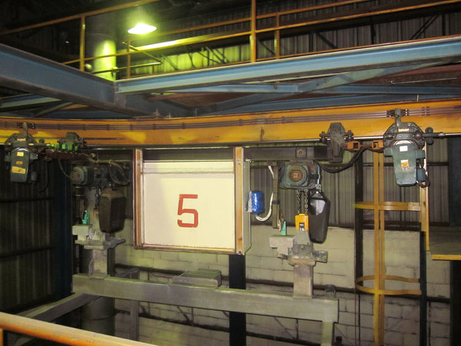Migración de un PLC Siemens S5-95U con 68 in/out, por un PLC Micrologix M1100 con entradas rápidas para instalar un sistema equivalente de encoder de 2 sensores inductivos en cuadratura para medir la posición de los polipastos, en cada uno de los 6 cargobus. Instalación de variadores de velocidad para cada cargobus que comandan los movimientos de traslación y de elevación.