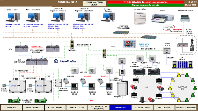 Implementación del Sistema de Control, Supervisión y Adquisición de datos SCADA. El sistema de control se implementó con plataforma Controllogix Redundante con 300 I/O, redes de comunicación Modbus, Devicenet, Controlnet Redundante, Ethernet Redundante. Plataforma de Visualización en Factory Talk View SE y el manejo de la base de datos con Transaction Manager y SQL.