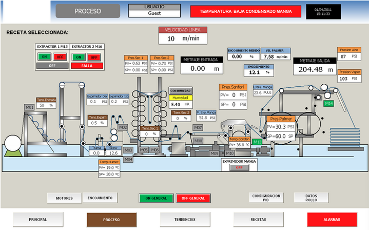 Modernización de una máquina sanforizadora de tela con PLC Allen Bradley modelo CompactLogix, para el sistema de vapor y el sistema coordinado de 12 Drives Allen Bradley.